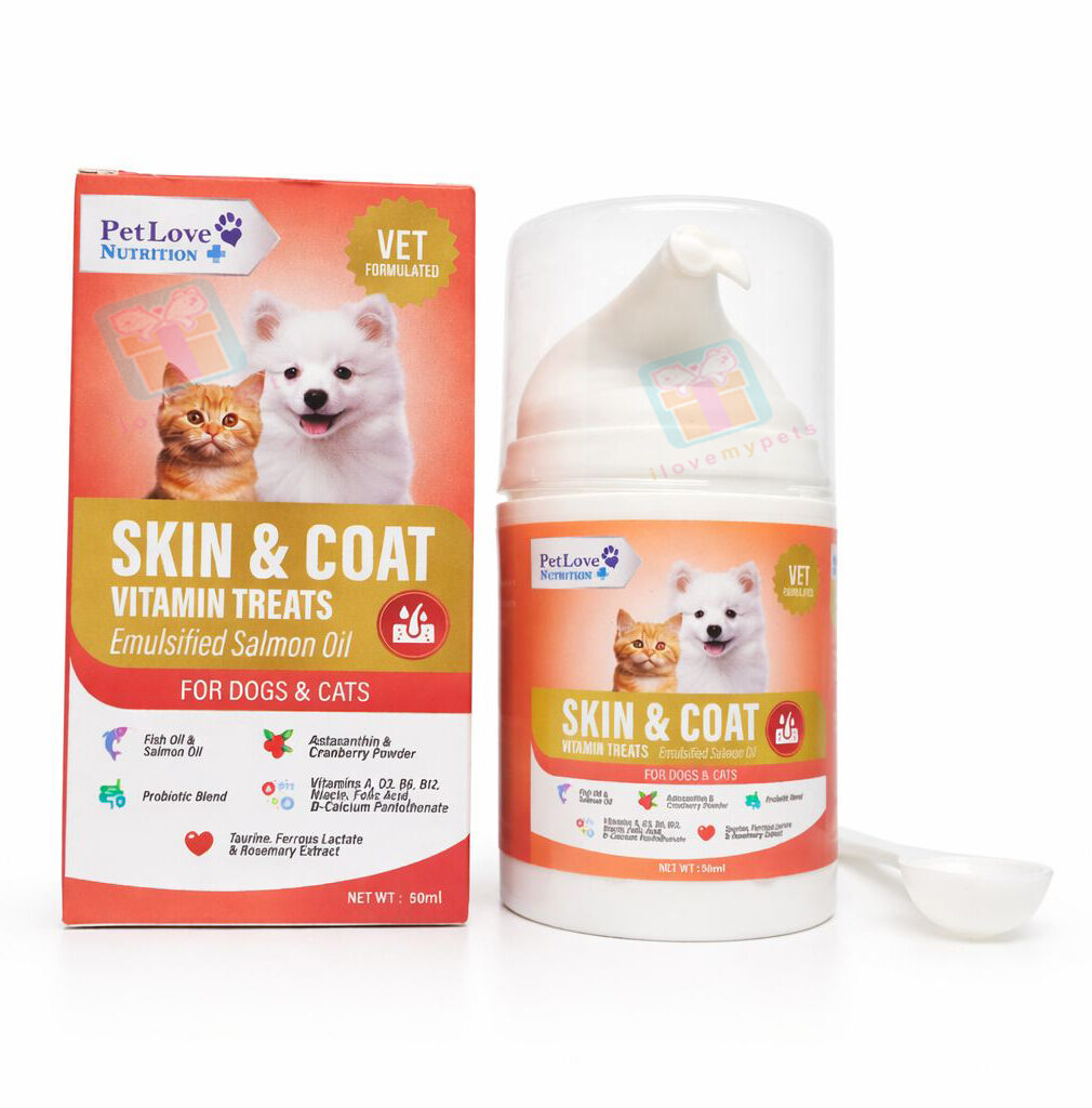 Skin & Coat Vitamin Treats, Emulsified Salmon Oil for Dogs & Cats